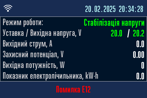 У випадку сбоїв в роботі буде показано номер попередження або помилки в нижному блоці інформаційних сторінок.